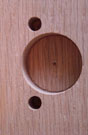 The back of the door should be drilled with two 8mm and one 35mm hole to receive the hinge and its mounting screws.
